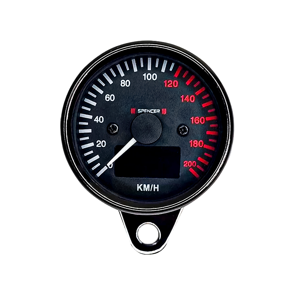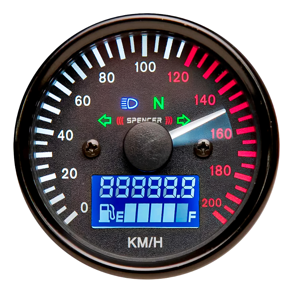 O painel conta com funções essenciais como hodômetro digital, velocímetro de até 200 km/h e marcador de combustível, além de luzes indicadoras de farol alto, setas e neutro. Possui display LCD digital de excelente visualização, suporte integrado e instalação simples em motos padrão analógico (a cabo).